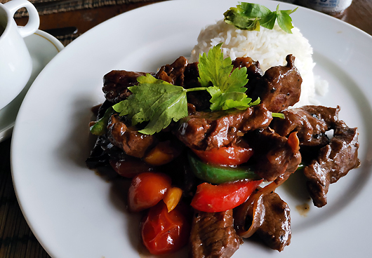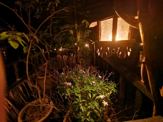 在度假屋小睡片刻之後就到了大家期待的時間,在昏暗的飯廳和大海的陪襯下,享受一頓浪漫的晚餐,晚餐有魚扒飯、茄子丹貝(tempeh)湯和海鮮沙拉,感到相當滿意的晚餐。