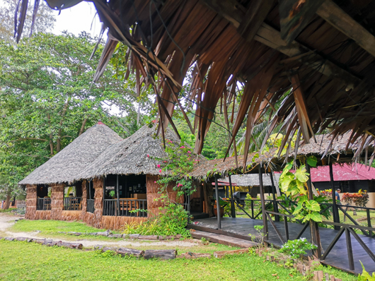 岸邊已有度假屋的服務員來迎賓,去度假,最期待的當然是落腳睡覺的地方,大家充滿興奮的心情跟隨著服務員帶領我們去度假屋,而眼前那充滿原始風貌的小木屋將會是來著兩晚的住宿,我們住的是15號小木屋,外觀披上茅屋的設計從裏到外都是原始的風味,首先入門前有個向海的私人陽台,入門就見到有挂了蚊紗的睡床,再進內就是一個相當寬闊的半開放式洗手間兼衝涼房,夜晚上廁所偶然會遇到昆蟲飛過是很自然不過的事,窗口只有窗簾遮掩、而門口只有大帆布掩著,度假屋被樹林懷抱、木屋又不是完全密封,所以木屋內提供了蚊香驅蚊,