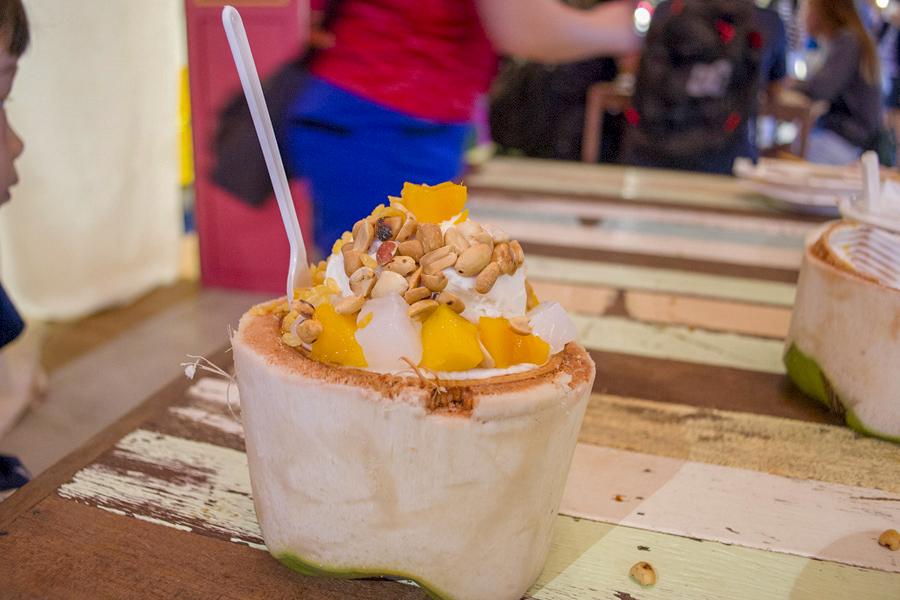 ![]() 图文并茂的餐牌 ![]() 猪蹄膀 60THB ![]() 猪脚 60THB 吃完这两种美食我们都很饱了,我们决定回酒店退房向下个景点Iconsiam出发。我们在BTS Krung Thonburi乘搭接驳巴士直通Iconsiam,十分方便。2018年开业的Iconsiam集合了购物,特色小食,料理餐厅和休闲的商场。一楼的Sook Siam 美食广场有各种美食摊位,而且还活生生把水上市场搬进这里来。