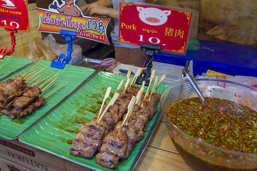 ![]() 人山人海的Kung Thep ![]() 泰式烤猪排 ![]() 手抓海鲜 吃完晚餐后,我们再继续逛夜市。我们买了芒果糯米饭和泰式烤猪肉串回酒店当宵夜。