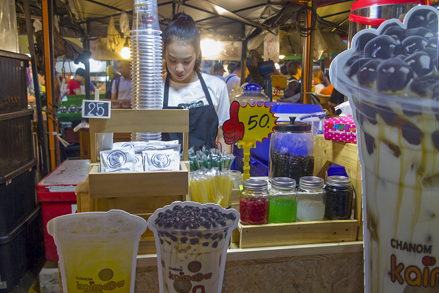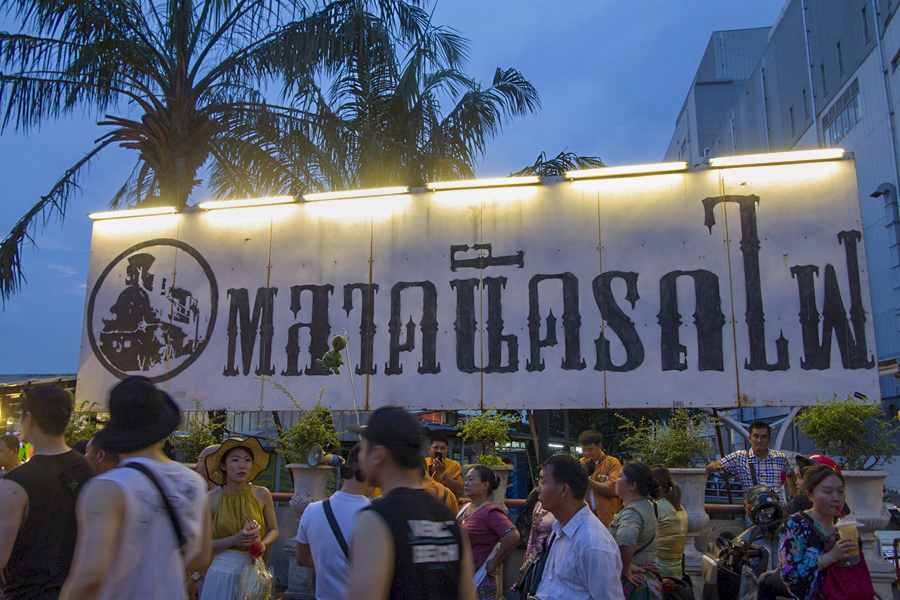大概5点左右雨停一阵子后,我们就走路到位于Esplanade购物中心后方空地的拉差达火车夜市。曼谷有两个出名的火车夜市,一个离市区有段距离的席娜卡琳火车夜市(Train Night Market Srinakarin),需打车才能到达。另一个火车市场就是拉差达火车夜市,这里交通方便轻轻松松就可搭MRT到来,难怪自2015开幕以来就受游客们的喜爱。